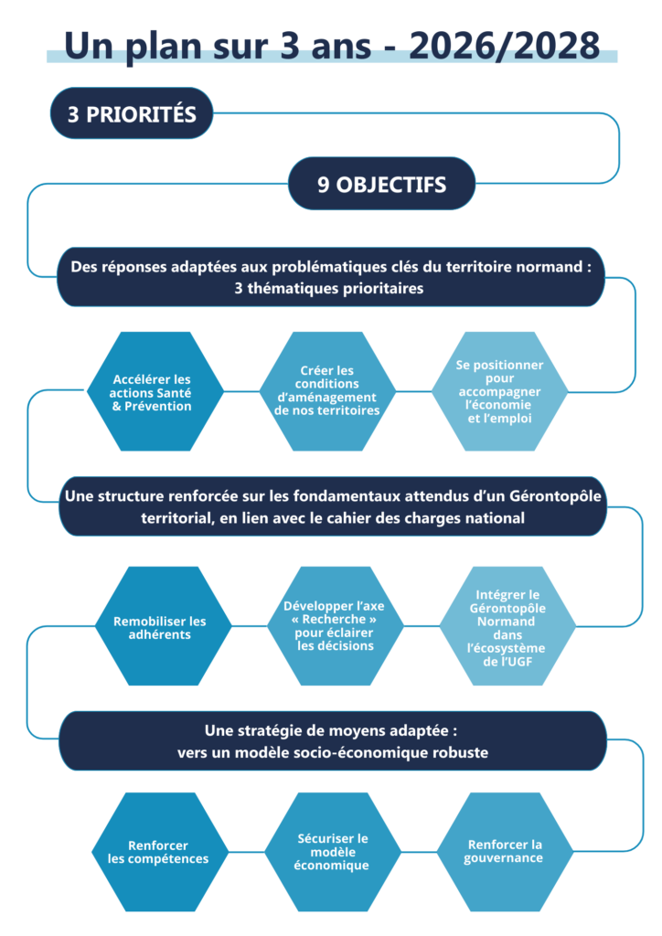 - Renforcer le positionnement du Gérontopôle Normandie au regard du cahier des charges national et de son projet associatif