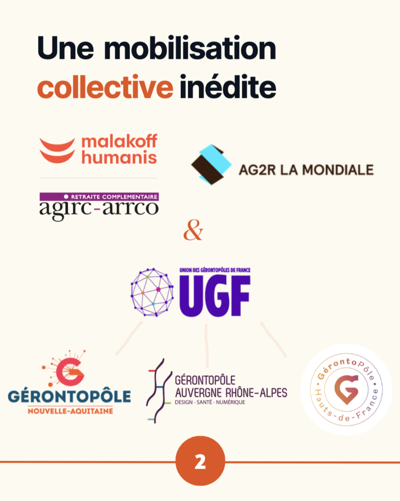 Le projet repose sur une coopération étroite entre trois Gérontopôles régionaux — Nouvelle-Aquitaine, Auvergne-Rhône-Alpes et Hauts-de-France — et plusieurs acteurs majeurs du champ de la protection sociale et de la retraite : la Fédération Agirc-Arrco, Malakoff Humanis et AG2R LA MONDIALE.